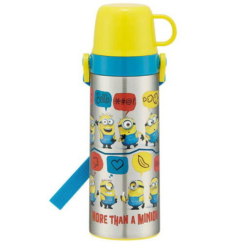 保温 保冷 超軽量 コンパクト 2WAY中栓ステンレスボトル 600ml ミニオンズ フィーバー / ミニオンズ 怪盗グルー 子供用 水筒 ステンレス 軽い まほうびん コップ付 ロック付 直飲み ショルダーベルト 肩ひも付き 遠足 幼稚園 保育園 スケーター